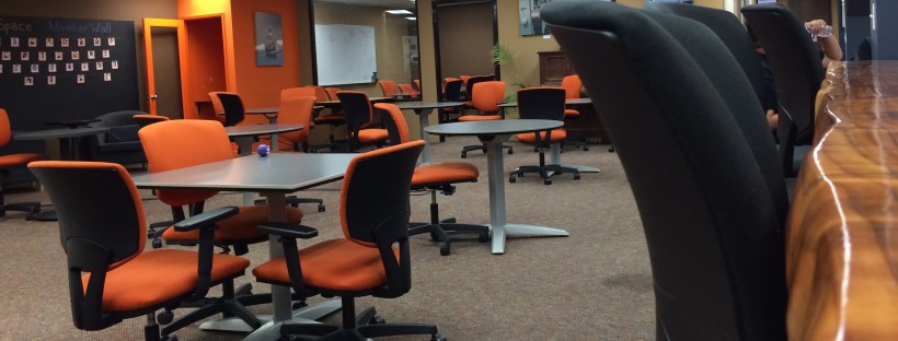 Came in for $5 Friday at NextSpace Union Square and got access to this (note that the floor is actually level—I was just trying to fit more into this photo and ended up titling my iPhone):