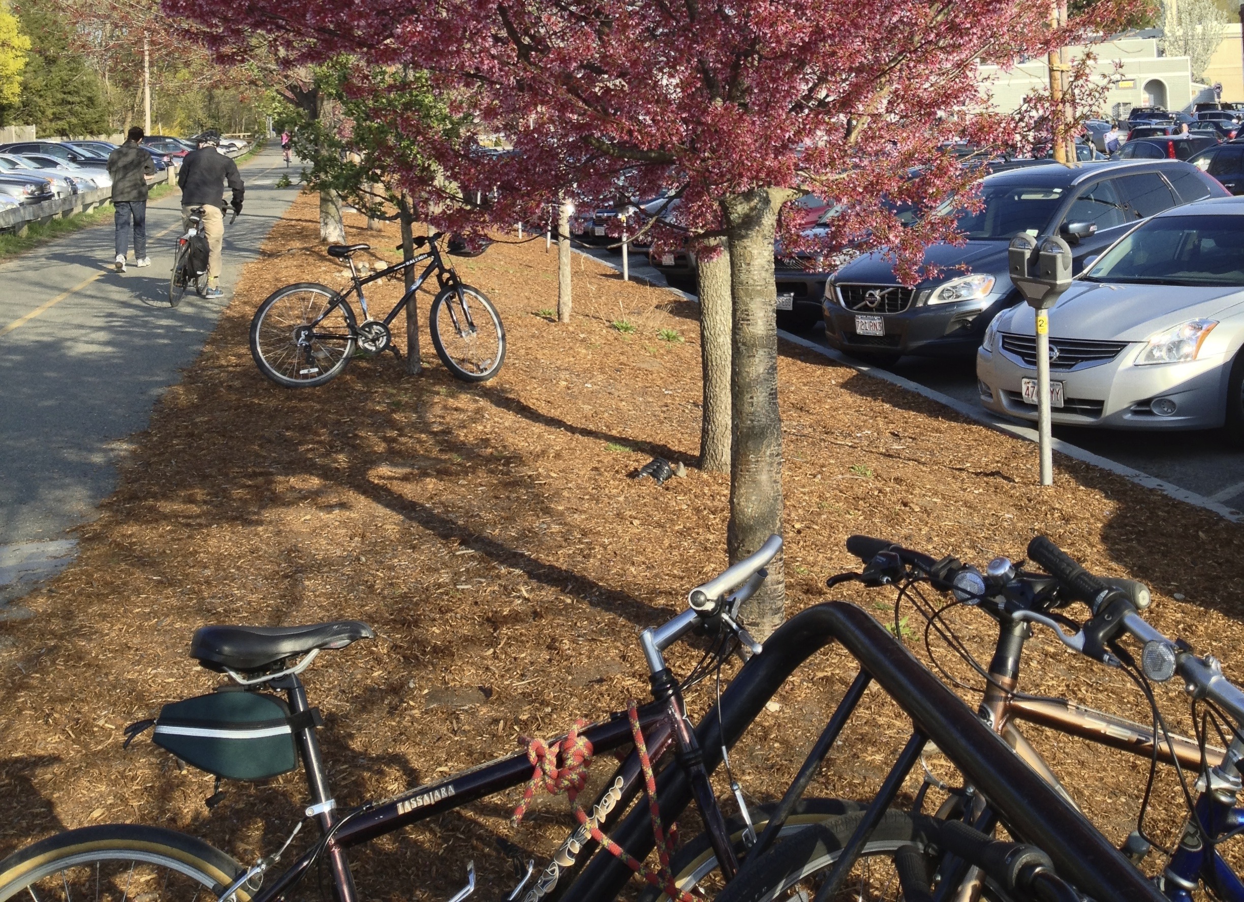 Most Interesting Bicycle Securement Yet August 9, 2013Leave a comment The “securing” of this bicycle to a rack off the Minuteman Bikeway I saw back in the spring of 2013 remains the most interesting approach to bicycle parking I’ve come across. The knot looks like it can easily be undone, but is that just a ruse? 42.443037 -71.228964